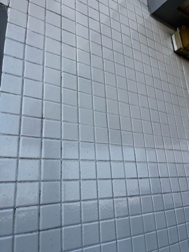 The building, covered in mosaic tiles (psifas), had gradually deteriorated over time: water seeped behind the tiles, the rebar rusted and expanded, breaking through the concrete. Tiles were falling off, and cracks appeared on the walls.