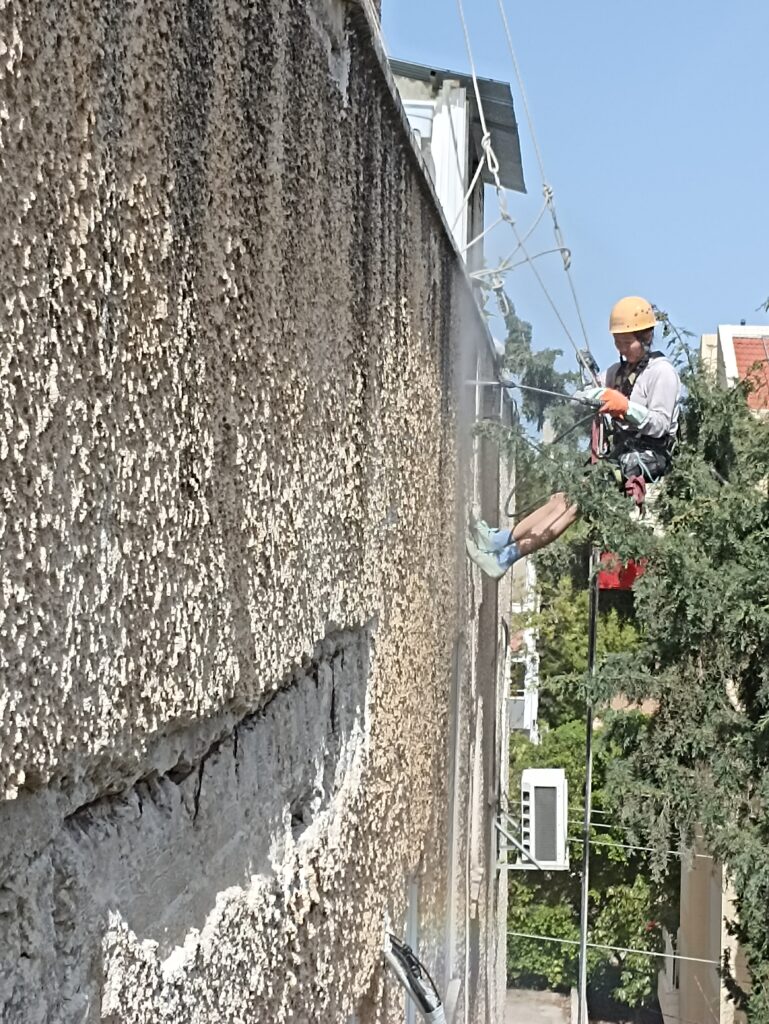 Старый фасад начал разрушаться: верхняя часть стены, в месте перехода между крышей и потолком квартиры, буквально осыпалась. Это слабое место — и здесь старый бетон начал крошиться. Жильцы заметили проблему вовремя и решили обновить дом, тем более что соседние здания уже привели в порядок.